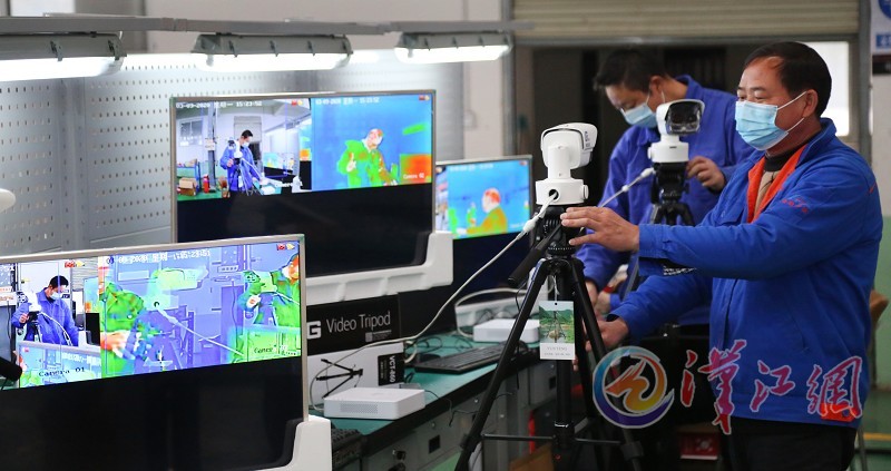 3月9日,在襄陽國鐵機(jī)電股份有限公司,工作人員正在調(diào)試熱成像快速測溫系統(tǒng)。本公司2月23日成功研發(fā)了熱成像快速測溫系統(tǒng),該系統(tǒng)可實(shí)現(xiàn)對進(jìn)出人員體溫檢測、人臉識(shí)別、實(shí)名制驗(yàn)證和考勤管理,可同時(shí)對30-50人進(jìn)行體溫快速檢測、篩查、報(bào)警。在疫情防控期間,本公司一天能夠生產(chǎn)30多臺(tái)設(shè)備,目前用于全市的疫情防控指揮部門、部分醫(yī)院及復(fù)工復(fù)產(chǎn)的企業(yè),下一步將投入到學(xué)校。